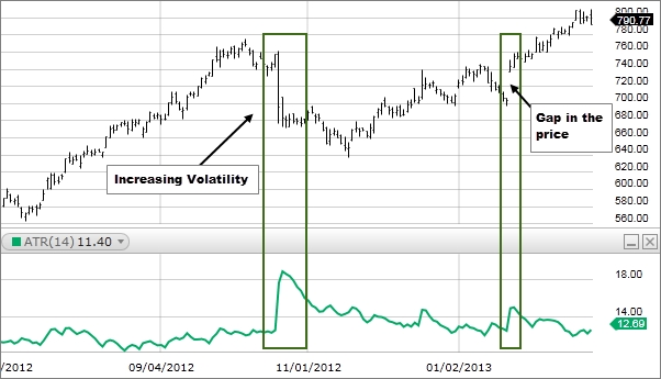 Average true range: Measure of daily price volatility. The true amount the price could move in a given day; largest probable move in a day based on previous data. Can be used to set our stop-loss.